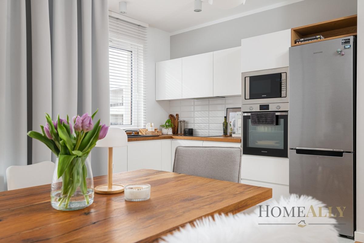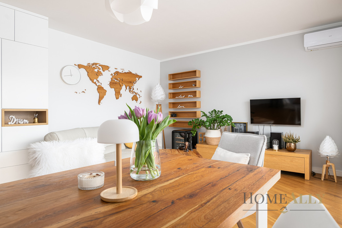 A stylish and comfortable 2-room apartment for sale on Dziatwy Street in Warsaw’s Białołęka district. Nearby you’ll find Henrykowski Park, Modlińska Street, and the SKM train station.