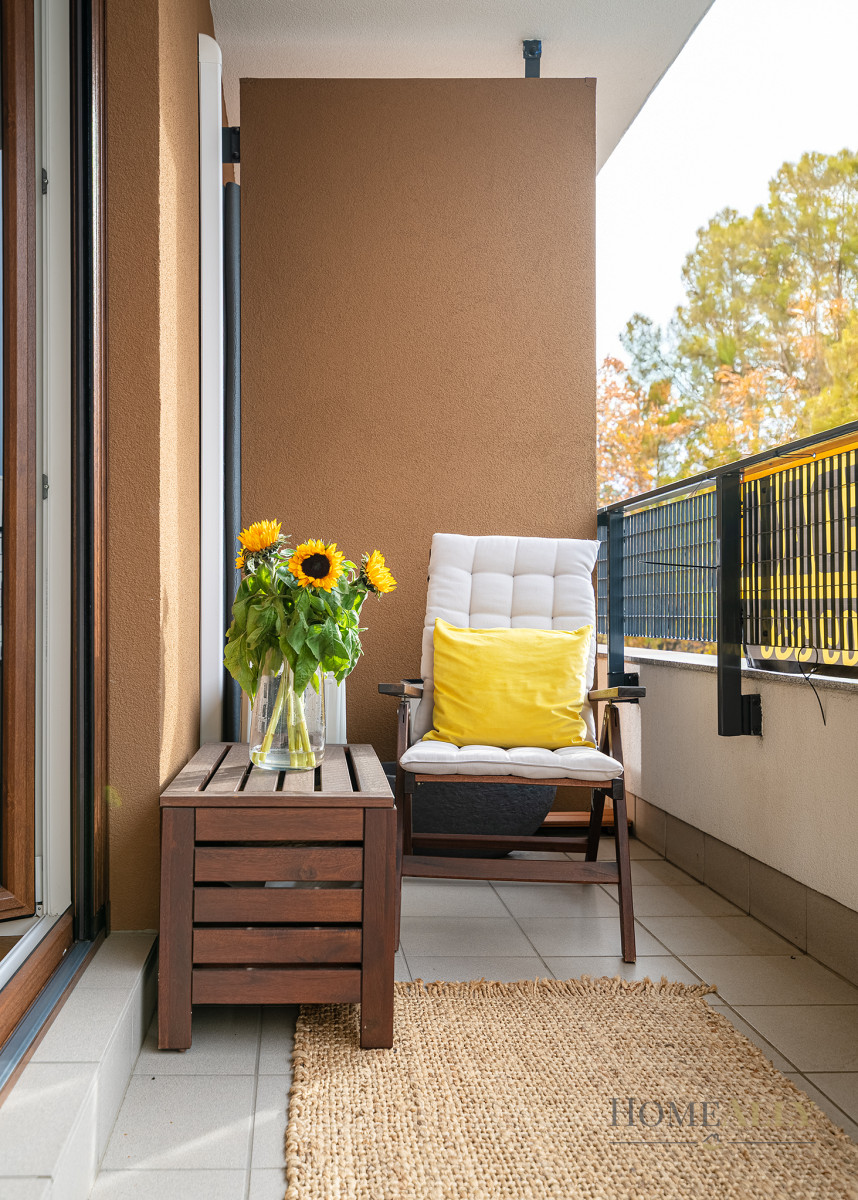 Dodatkowo do mieszkania przynależy balkon (ok. 7 m2), na którym można zmieścić podstawowy zestaw mebli ogrodowych (wyjście z salonu).