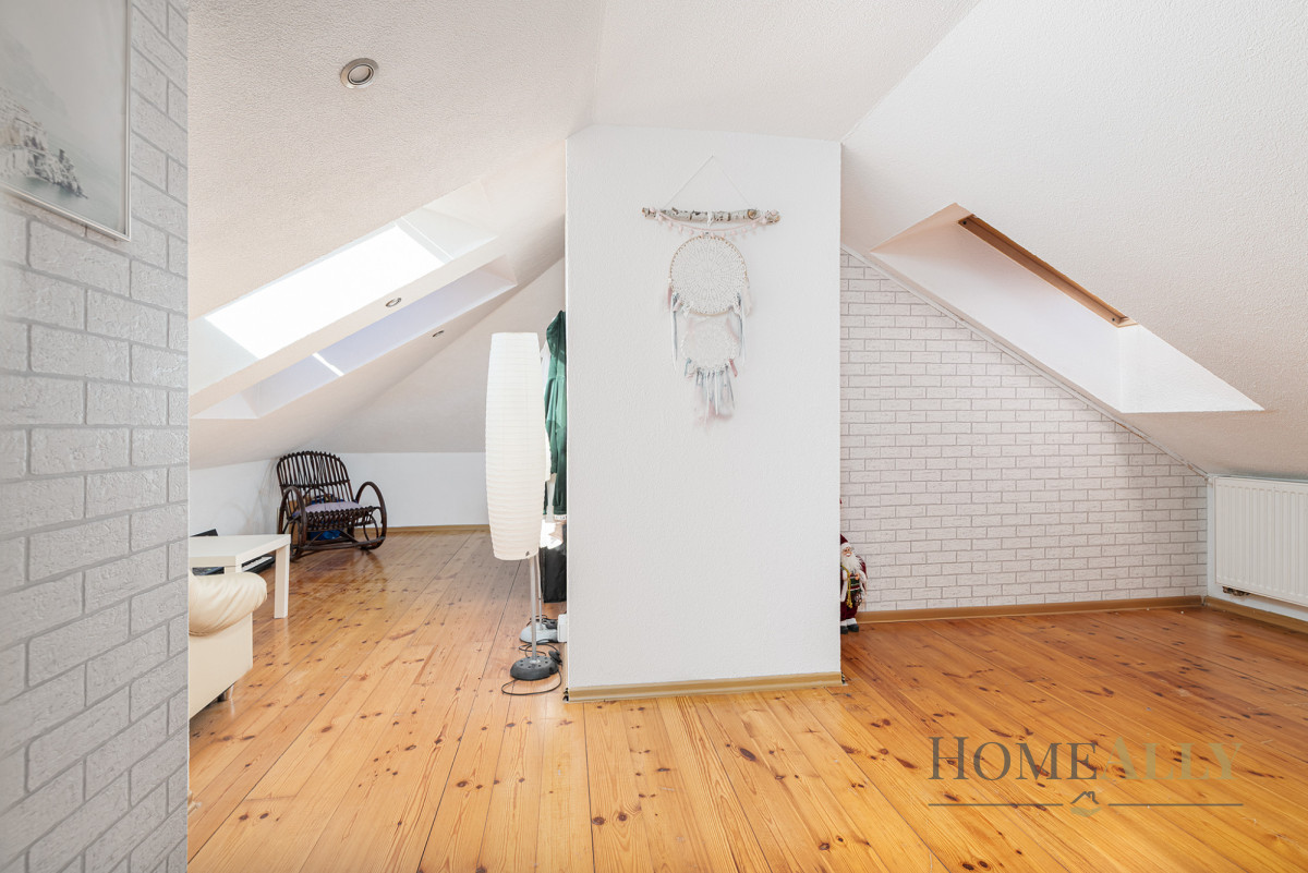 - Otwarta przestrzeń, którą można zaadaptować jako dodatkową sypialnie, siłownie lub kącik zabaw dla dzieci
