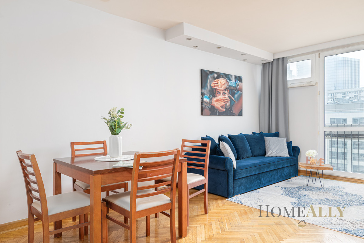 miło mi zaprezentować Państwu mieszkanie o powierzchni 40 m2 znajdujące się na 10 piętrze budynku z lat 70 roku. Budynek jest położony przy ul. Jana Pawła II tuż Hali Mirowskiej, nieopodal stacji metra Rondo ONZ.