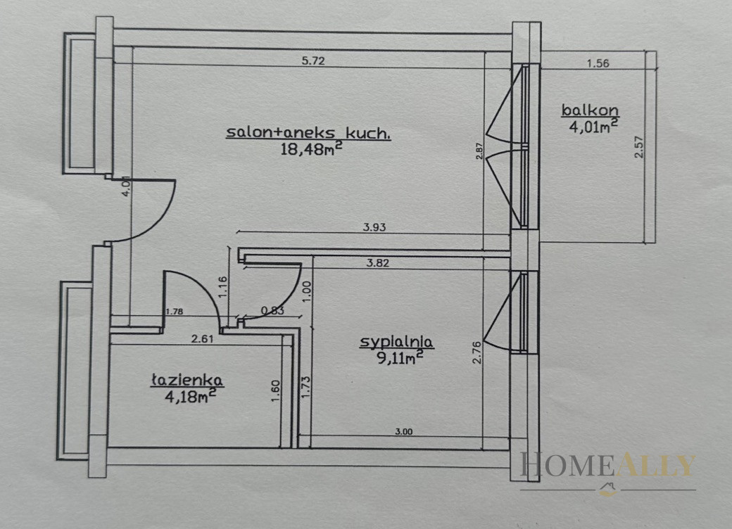 - jasny salon a aneksem kuchennym i z wyjściem na balkon,